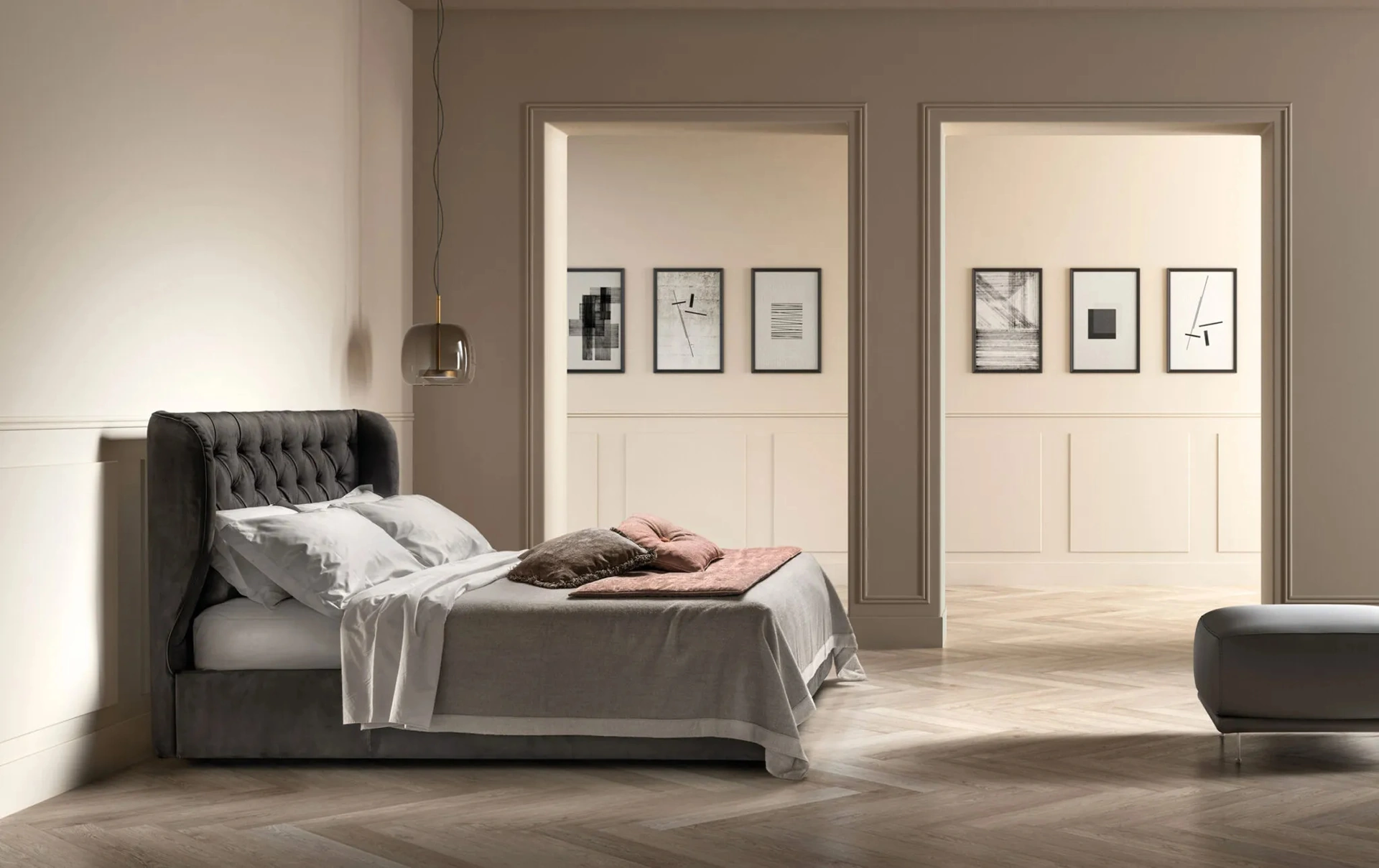 Il letto Gem in pelle, tra i modelli imbottiti matrimoniali moderni di Bside, è ideale per garantirti il relax totale.