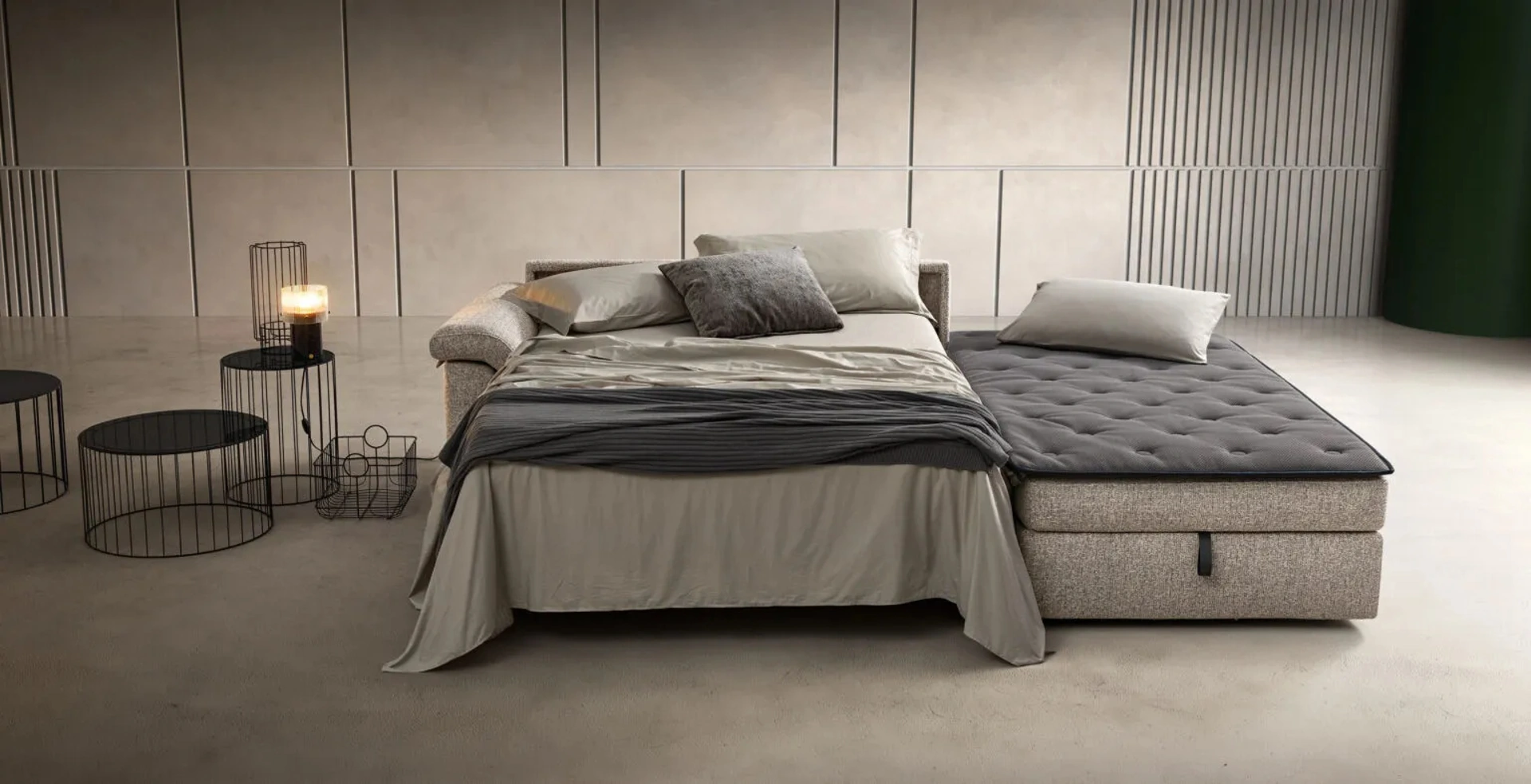 Divano Letto Camber di Samoa: ricrea uno spazio accogliente e confortevole in spazi moderni dall'estetica raffinata. I nostri Salotti sono progettati per essere abbinati a accessori di ogni tipo, come tavolini, lampade e piantane o in combinazione con ulteriori divani in tessuto. Il catalogo Samoa rende disponibili tanti spunti per ammobiliare l'habitat in nome di praticità e valore estetico, mettendo al centro il tuo comfort. La collezione di divani della firma in questione presenta tanti spunti peculiari per ammobiliare il living in nome di praticità, comfort e stile.